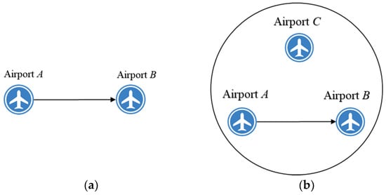 Figure 4. Direct and indirect causal relationships of airport delay propagation: (a) causal relationship; (b) indirect causal relationship.