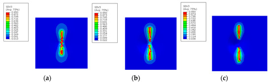 After obtaining the residual stress–strain field, the initial impact damage was calculated using Lemaitre’s elastic–plastic damage evolution equation, and the maximum initial impact damage for different impact pit depths is listed in Table 7.