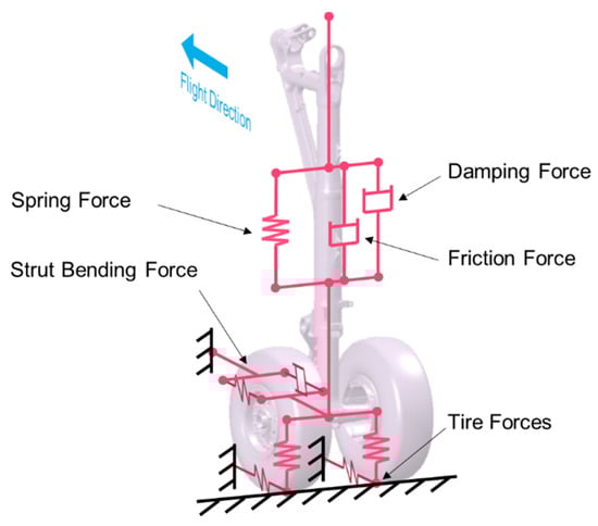 In this process, it is necessary to include the ground friction and elastic and inertial forces at the wheel axle, which can be determined from the performance parameters of the landing gear and the state parameters of landing scenarios.
