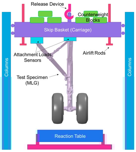 The landing gear is an important component that helps the airframe mitigate the impact and dissipate energy during takeoff, landing, taxiing, and other ground handling conditions [1,2,3]. The landing gear drop test simulates the process of an aircraft landing by dropping the landing gear to a reaction table from a high position in laboratory conditions so as to ensure that the cushioning characteristics, designed parameters, and structural reliability meet the design requirements [4]. As a crucial test verification link in landing gear design, every newly created landing gear must be confirmed by the landing drop test. There are corresponding requirements for it in both civil and military specifications to assure standardization and validity [5].