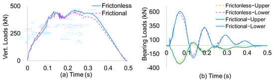 Bearing frictional influence: (a) vertical WA loads; (b) bearing support loads.