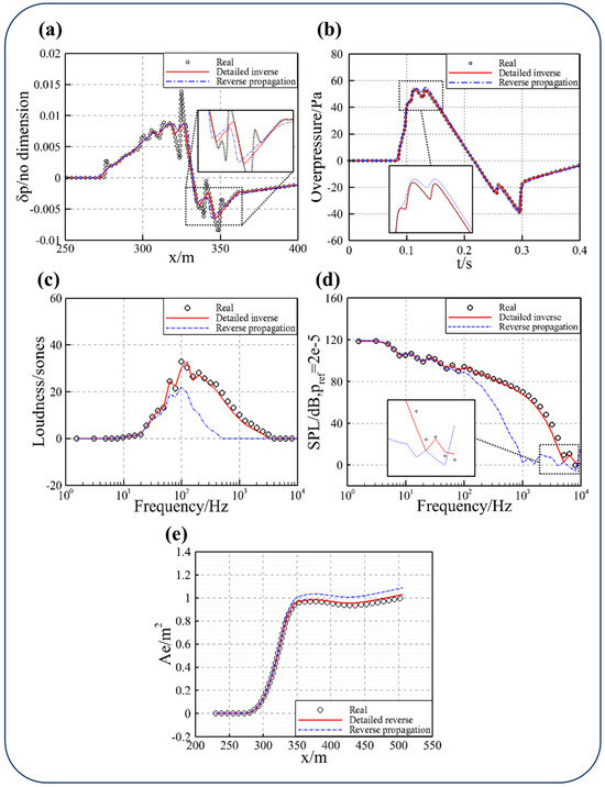To verify the reliability of inversion, we performed frequency domain analysis of far-field signals, presented in Figure 3c,d as the sound pressure level and loudness distribution of corresponding far-field signals in the frequency domain. It can be seen that the detailed inversion effectively restores the high-frequency signal, which represents the shock wave signals.