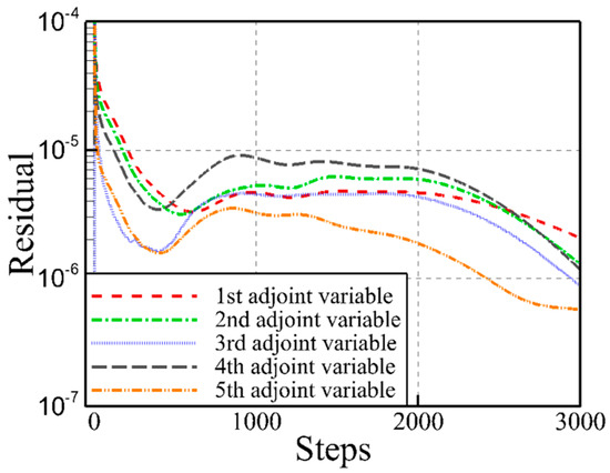 From Equation (9), it can be seen that if a suitable is found to make the first term at the right end equal to 0, as shown in Equation (10), there is no need to calculate the derivative of the flow field relative to the design variable, saving a lot of CFD calculation time and reducing calculation costs.