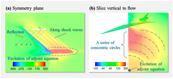 The expression of the sonic boom adjoint equation is shown as Equation (6). It reflects the sensitivity of far-field sonic boom signals to near-field sonic boom signals.