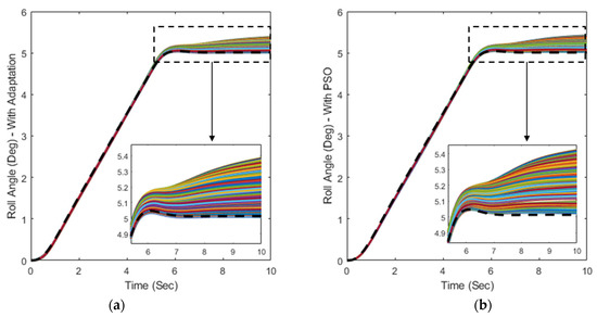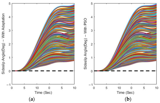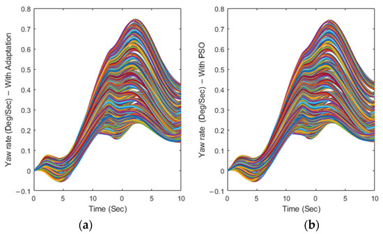 However, as another approach, we also used the PSO algorithm instead of these adaptation laws to find the optimum values of , and in Equation (33), as explained in Section 2.2.3.