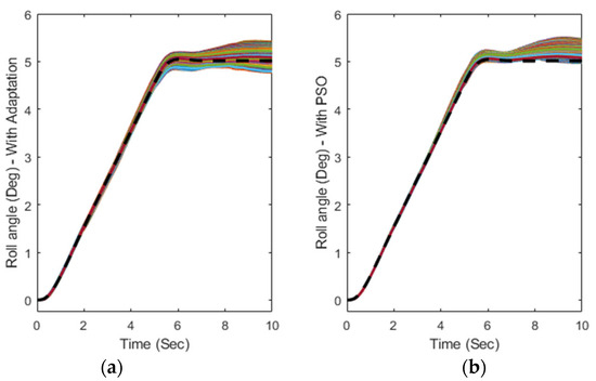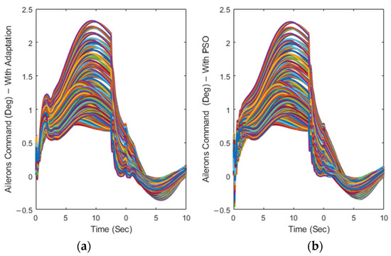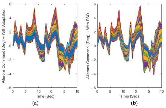 With this respect, using the control laws expressed in Equations (10) and (11a) and its adaptive gains and calculated by Equation (30), the final form of the aileron control law becomes