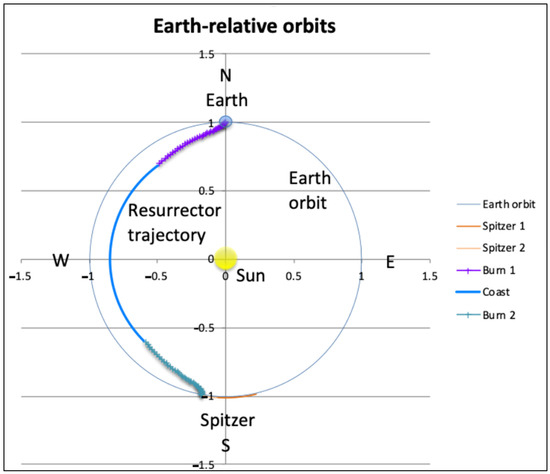 The Resurrector’s second mission of reactivating Spitzer by providing a crosslink and an Earth relay as the telescope comes out of solar conjunction occurs simultaneously with the space weather science operations.