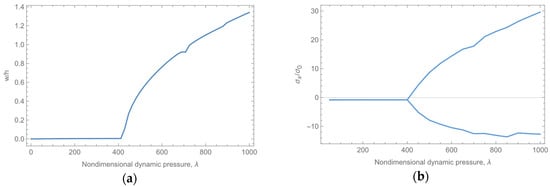 The following numerical results are based on the model in Case 1. The results are displayed as dimensionless variables, including the dimensionless time, dynamic pressure, and air-to-plate mass ratio, as shown in Equation (49).