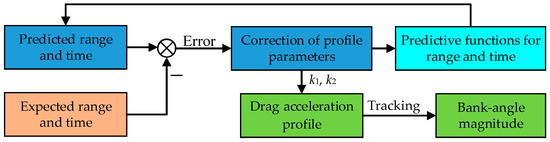 where and are the undetermined dual-parameters of the drag acceleration profile. These parameters are used to enforce range and time constraints to ensure that the drag acceleration profile remains within the corridor, which should satisfy the constraints as follows: