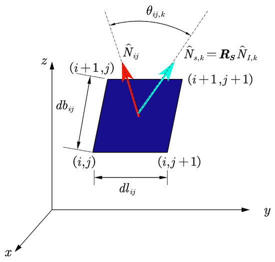 Several models have been developed in recent years. Carlson proposed a solar model in 1983 [13]. However, it was oversimplified. A comprehensive solar model, which is not that accurate at high altitudes, has been proposed by Ran [14]. The solar radiation on an arbitrary object varies with the day of the year, the time of day, and the location of the airship deployment. In this model, the solar radiation () can be estimated as the sum of the direct irradiation () and the diffuse irradiation () [15]: