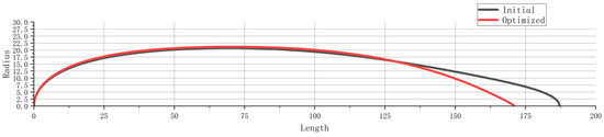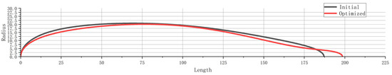 Table 10 shows the comparison between the final shape and the original shape. It can be seen that the total weight and area–volume ratio of the airship is reduced compared with the original shape, and the drag coefficient is increased.
