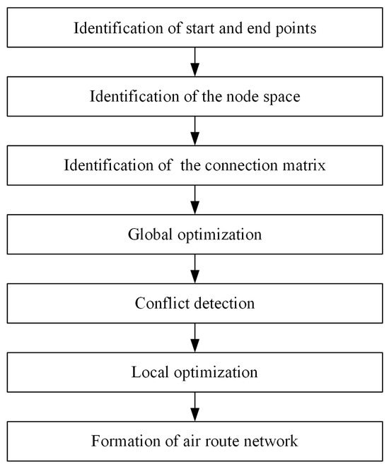 The fundamental process of constructing the urban air mobility route network based on flight routes is illustrated in Figure 3.