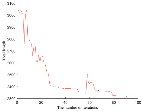 For the analysis of the final experimental results, this study examines the iterative effect, changes in path length, and spatial usage rate. As depicted in Figure 16, it can be observed that by applying the optimization method proposed in this study, the total length of the final path converges to 2312.6.