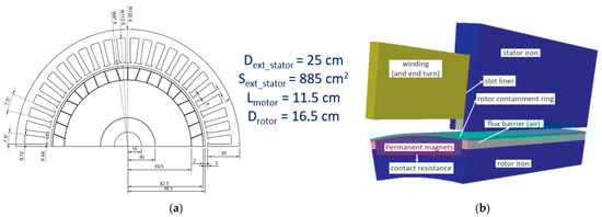 Electric machine design: (a) electrical machine dimensions under investigation; (b) PM motor segment components.