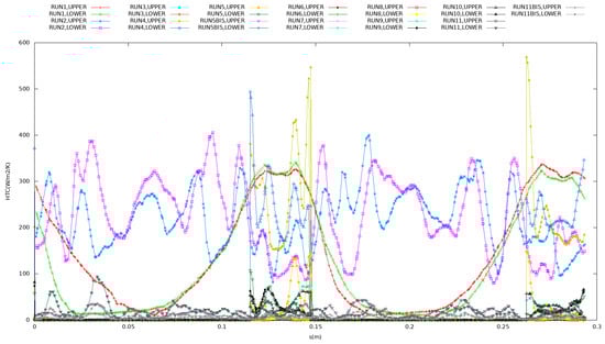 In this study, different numbers of windings on the cooling jacket from 4 to 10 are examined, from which it is possible to estimate the work of the convective heat exchange coefficient and derive maximum values of the thermal power exchanged. Table 1 shows schematically the correlations of the dimensionless heat transfer coefficient (Nusselt Number—Nu) for the various cooling techniques mentioned.