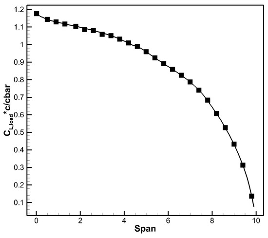 Spanwise lift coefficient distribution.