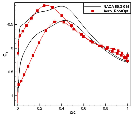 Comparison of pressure coefficient distribution for aero root airfoil.