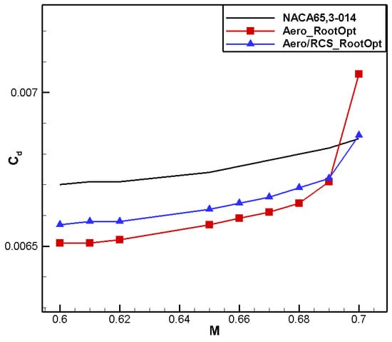 Comparison of drag characteristics for aero root airfoil.