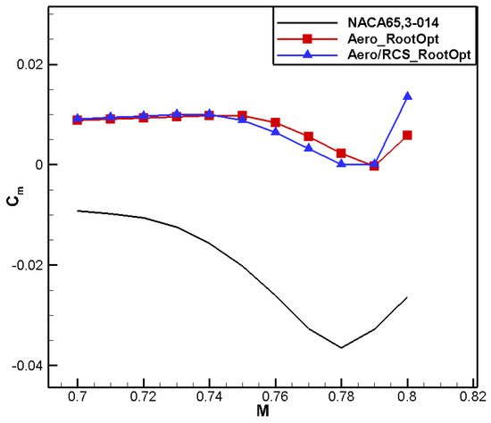 Comparison of moment characteristics for aero root airfoil.
