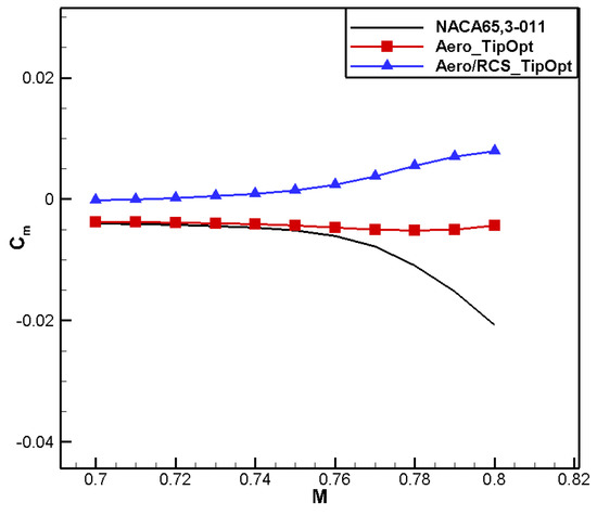 Comparison of moment characteristics for aero/stealth tip airfoil.