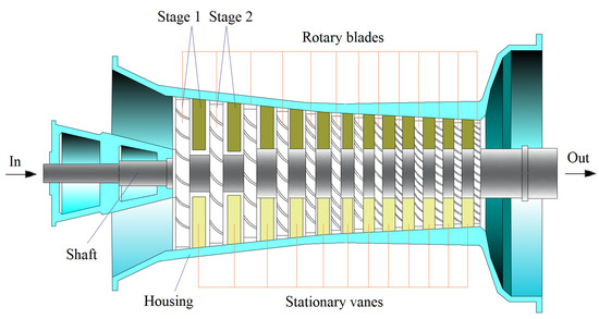 Schematics of an axial dynamic compressor.