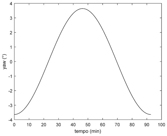Yaw attitude angle (yaw steering maneuver) of Tx satellite along one orbit.