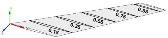 The span locations are displayed in Figure 11. The nodes which are used for the comparison of the results for different cases are taken from sectional regions within a 0.004 m interval from the given chordwise section.