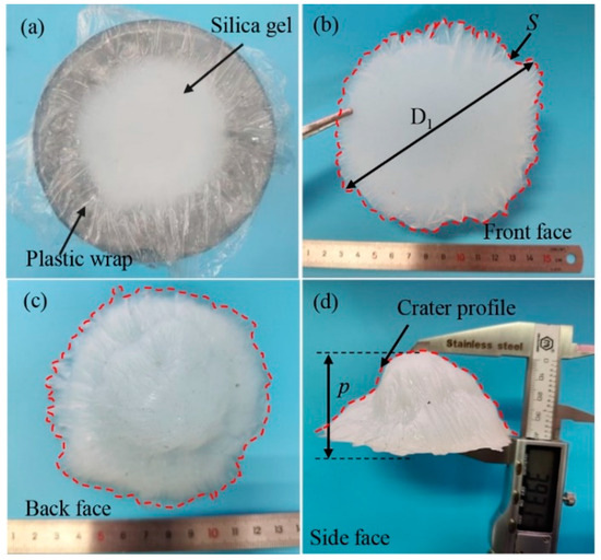 Silicone mold and release after the crater. (a) Filling silica gel. (b) Front face. (c) Back face. (d) Side face.
