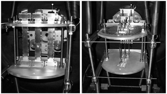 Tethers support structure mounted in the LGG impact chamber: On the left, the tape configuration is at α = 0°, on the right, tethers are oriented at α~90° (high obliquity).
