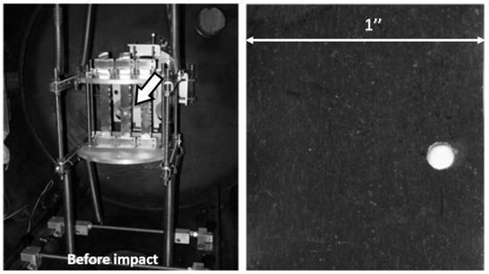 - Hill, S.A. Determination of an empirical model for the prediction of penetration hole diameter in thin plates from hypervelocity impact. Int. J. Impact Eng. 2004, 30, 303–321. [Google Scholar] [CrossRef]