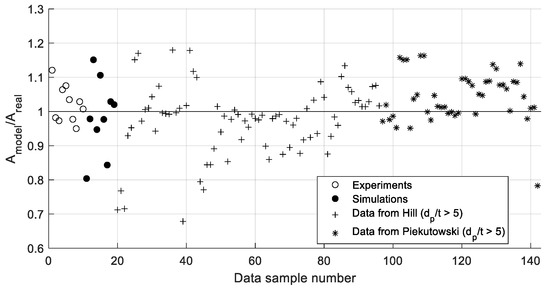 Based on these considerations, the following Adapted Piekutowski–Sorenson Model (APSM) model is proposed; thanks to its different formulation, it overcomes such limitations, allowing investigating the higher dp/t ratios.