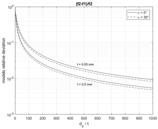More precisely, the maximal deviations for Al-1100 and PEEK, calculated for a thickness of 0.05 mm and a dp/t ratio of 100, are, respectively, 8.27% and 4.00%.