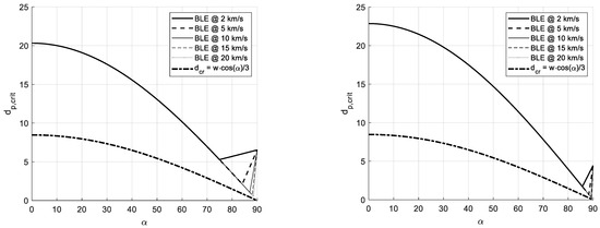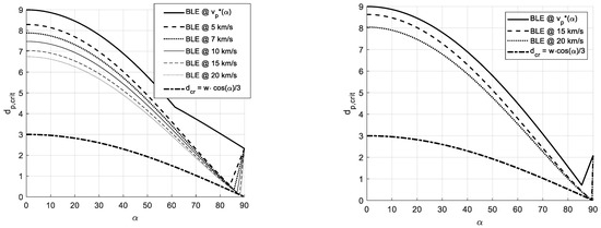 - For vn = 0 (α~90°), the BLE is derived from Equation (13);