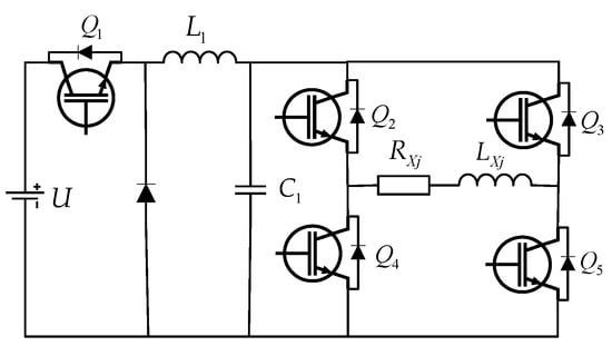 For the driving topology adopted in this paper, there are two power circuit states in a switching cycle Tp: the charging interval and the freewheeling interval. The charging interval is shown in Figure 5.