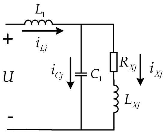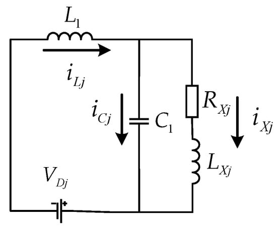 While the power amplifier is in the freewheeling state, as shown in Figure 6, according to Kirchhoff’s current law, the power amplifier model can be written as Equation (8):