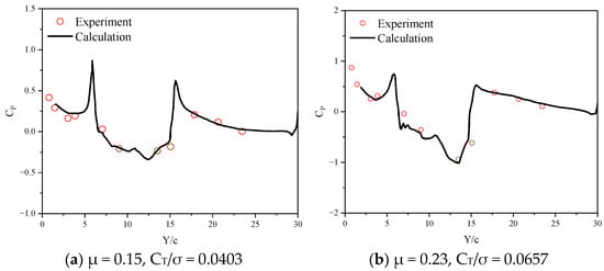 Figure 5 shows the distribution of the pressure coefficient on the fuselage surface at different flight states. The results indicate that the trimming method established in this paper can be effectively used for the determination of manipulation and simulation of aerodynamic characteristics for rotor and fuselage.