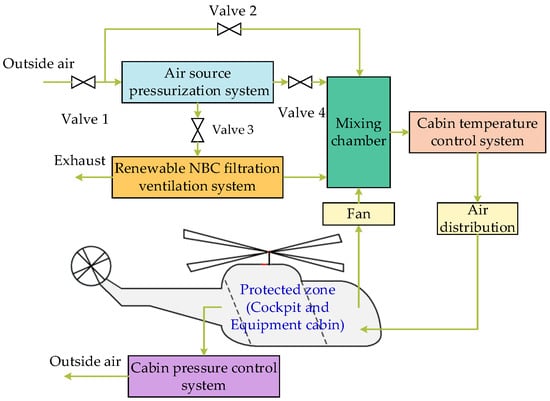 The helicopter’s capacity to enter and exit the battlefield quickly, along with its combat and rescue, plays a crucial role in national aviation power [1,2,3]. However, in a nuclear, biological, and chemical (NBC) environment, the aircrew will be harmed both in the body and psychology due to helicopter exposure to an external contaminated environment.