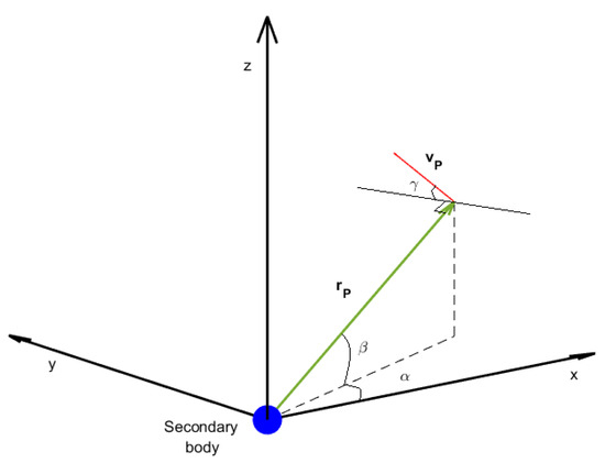 This vector can also be expressed in the XYZ local planetocentric reference frame, making use of angular coordinates in the form of , as shown in Figure 12. With such a definition, the vector can be rewritten: