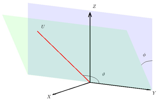 These vectors can be represented in a tridimensional set of polar coordinates [18,35], as shown in Figure 6. The three angles used in the representation are defined as: