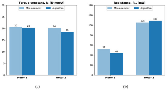 For aluminum-wound motors, and are parameterized with the appropriate values for aluminum. The aviation industry has explored aluminum cabling because aluminum is lighter and more flexible than copper. Aluminum even has a lower resistivity per unit mass, i.e., 1 × g vs. 1.9 × g [25]. However, aluminum also has a higher coefficient of thermal expansion, which may lead to faster thermal failure in motors. Further discussion is beyond the scope of this paper.