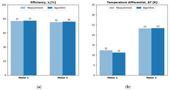 Equation (29) computes the change in motor mass (). Equation (30) predicts the energy () that the motor wastes as a function of the motor’s power losses and the specified mission duration (). Equation (31) then estimates the extra battery mass () that corresponds to the additional energy demand. We assumed a battery density () of 170 Wh/kg (612 kJ/kg). All variable changes are relative to the respective values from the first iteration. Equation (32) computes the net change in mass () from the combined changes in motor and battery weight.
