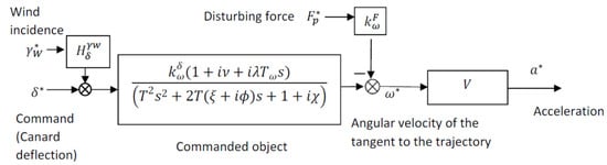 In paper [6], starting from the equations of motion written in the Resal frame, a linear model of the command motion for the slow-rotating rocket is constructed. Due to the coupling between channels given by gyroscopic and Magnus terms, the linear model is constructed with complex coefficients, highlighting both nutation and precession motion and defining the flight quality parameters. The linear development of the commanded motion ends with constructing a structural scheme of the commanded object specific to the slow-rolling missile with complex coefficients. Unlike work [5], which uses serial development, in work [6], the generation of the switch command for a single-channel missile is conducted considering the sign of a trigonometric expression dependent on the roll angle, as shown in [15]. Further, in the paper [6], two models of slow-rolling single-channel guided missiles are analyzed, the portable anti-aircraft homing missile and the portable anti-tank wire-guided missile. Unlike work [5], which forms the command in the body frame, in work [6], starting from the time-modulated command, an equivalent command is obtained in the Resal frame. Based on this equivalent command, the structural diagrams of the guided missile are built for the two cases: a homing missile and a wire-guided missile. Given that the structural schemes have complex coefficients, the paper was limited to determining in the case of the wire-guided rocket the roots of the characteristic polynomial and the phase–frequency/amplitude–frequency diagrams, highlighting the differences from the case of the non-rolling rocket.