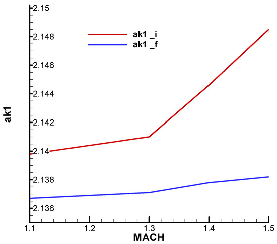 The diagrams of the equilibrium incidence and canard angular deflection according to the Mach number are presented in Figure A11 and Figure A12 in Appendix B.