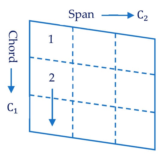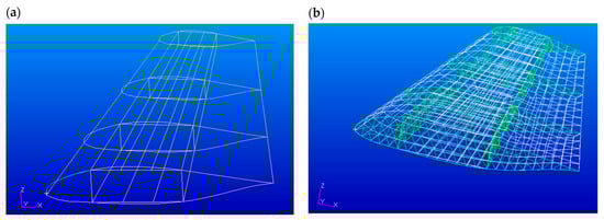 Among aero-structural coupling analysis tools, NASTRAN is a finite element analysis program that was originally developed for NASA [29]. In aero-structural coupling problems, structural and aerodynamic grids are connected by interpolation [30]. This approach enables the independent selection of grid points for both the structural model and the aerodynamic elements of lifting surfaces or bodies. The structural model of a wing may encompass a one-, two-, or three-dimensional array of grid points, while the aerodynamic theory may employ lifting surface theory or strip theory. A versatile interpolation method is available to connect various combinations seamlessly. Any aerodynamic panel or body can be subdivided into subregions for interpolation, utilizing separate functions for each. This interpolation method, known as splining, involves mathematical analysis of beams and plates, including linear splines that generalize infinite beams to accommodate torsional and bending degrees of freedom, surface splines that address solutions for infinite uniform plates, and explicit user-defined interpolation methods [31,32].