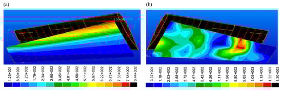 The moment distribution on the wing in Newton–meters considering (a) rigid components in the model and (b) elastic components in the model.