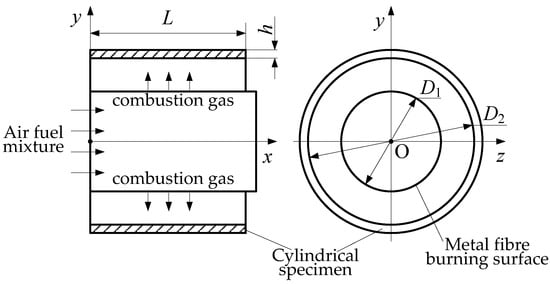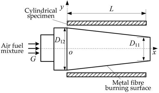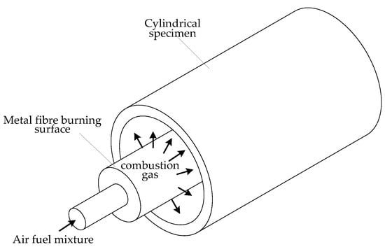 For a cylindrical specimen, the metal fibre combustion surface can be formed into a cylindrical shape so that the gas flow is injected radially against the inner wall surface of the specimen, as shown in Figure 2.