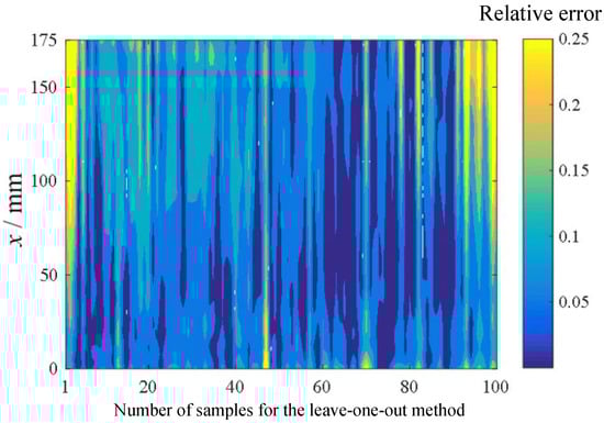Relative error of the specimen surface by the leave-one-out cross-validation strategy.