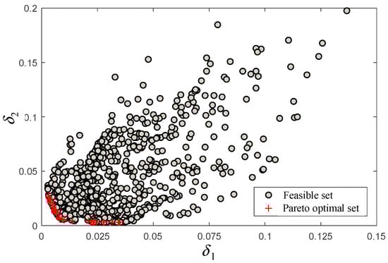 The distance Δ of the Pareto optimal solution relative to the coordinate origin was calculated by Equation (11):