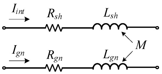 The second step in the equivalent circuit of the lightning current and cable coupling process is shown in Figure 2. Under these circumstances, lightning strikes the aircraft and generates induced current in the grounding network. The grounding network and the cable generate mutual inductance, which we express as