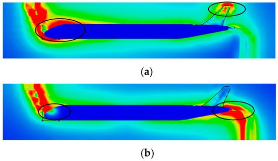 According to the model constructed in Figure 6, the spatial electromagnetic field distribution when the lightning current passes through the fuselage at the time of 6.4 μs can be obtained, as shown in Figure 7.